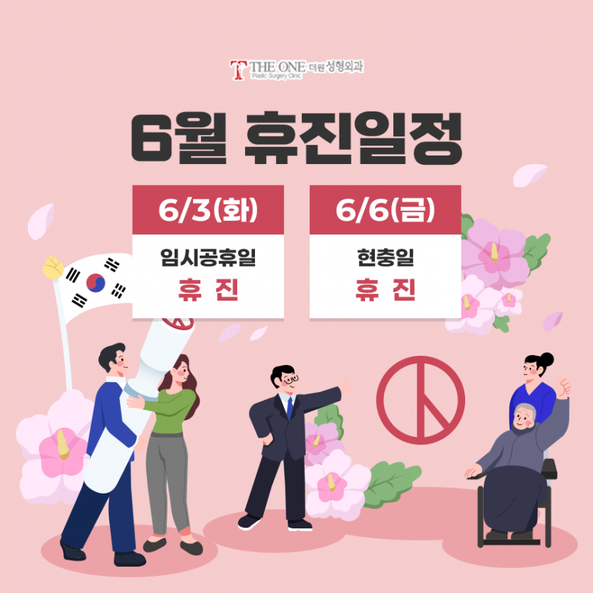 THE ONE PLASTIC SURGERY 공지사항 6월 진료 일정 작성자 더원성형외과 답변 0건 조회 301회 작성일 25-05-26 11:19 6월 3일(화) 임시공휴일 및 6월 6일(금) 현충일은 휴진입니다.진료 예약 및 내원 시 참고 부탁드립니다. 목록 이전글 광복절 휴진 안내 25.08.08 다음글 5월 진료 일정 25.04.28